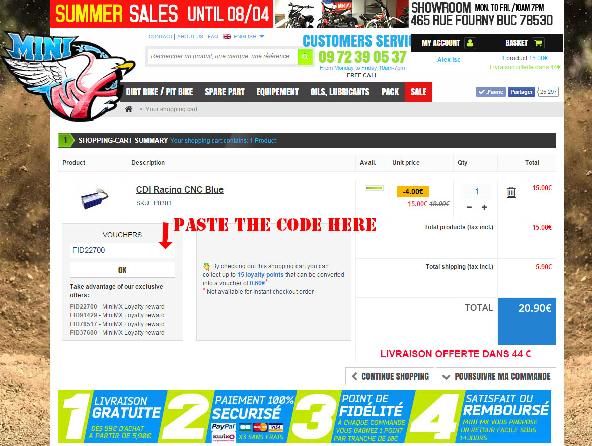 offerte dans 39€ *hors motos MINIMX -