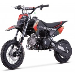 Cette Rookie 110cc full-automatique est adaptée pour pour les jeunes pilotes qui veulent s'initier à la pratique du tout-terrain cette Dirt Bike vous apportera tout ce dont vous avez besoin. Sa hauteur de selle de 67cm de haut et ses tailles de roue 10" arrière et 12" avant permet une position optimal pour nos jeunes pilotes en herbe.