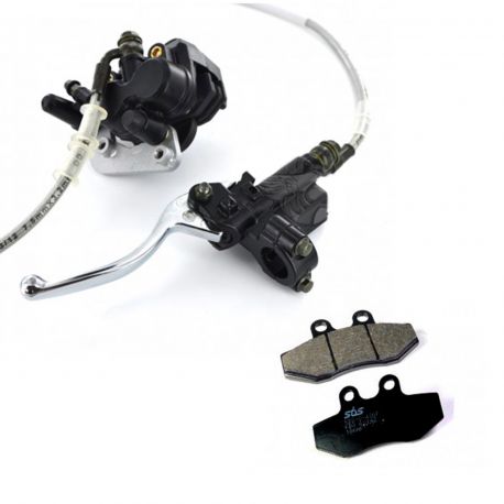 Kit de frein Avant double piston pour les fourches MARZOCCHI et STAGGS pour Dirt Bike, Pit Bike. Equipé d'un double piston il vous assure un freinage réactif et efficace sur terrain et piste, prêt à monter et est livré complet (Platine, Plaquettes de frein, Durite, Maître cylindre, Levier) il satisfera vos attentes dans les moments les plus délicats.