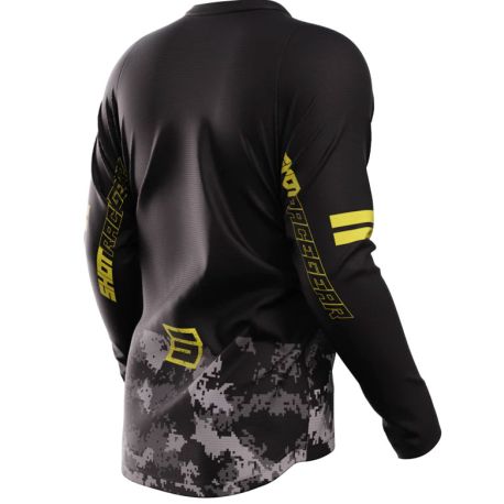 Maglia incrociata in poliestere. Taglio anatomico molto flessibile. Polsini con finitura in rete. Collo con finitura sportiva in lycra. Parte bassa della schiena più lunga. Colori inalterabili.