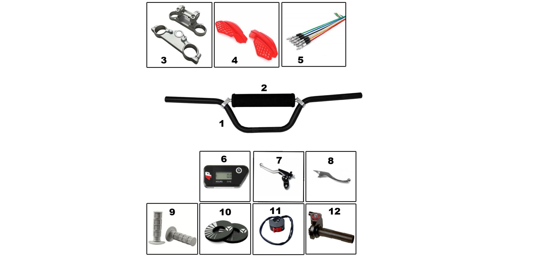 Schema dei pezzi di ricambio: Controllo - Leva, interruttore automatico, tirante, manubrio, morsetti (Pit Bike CRZ BW)