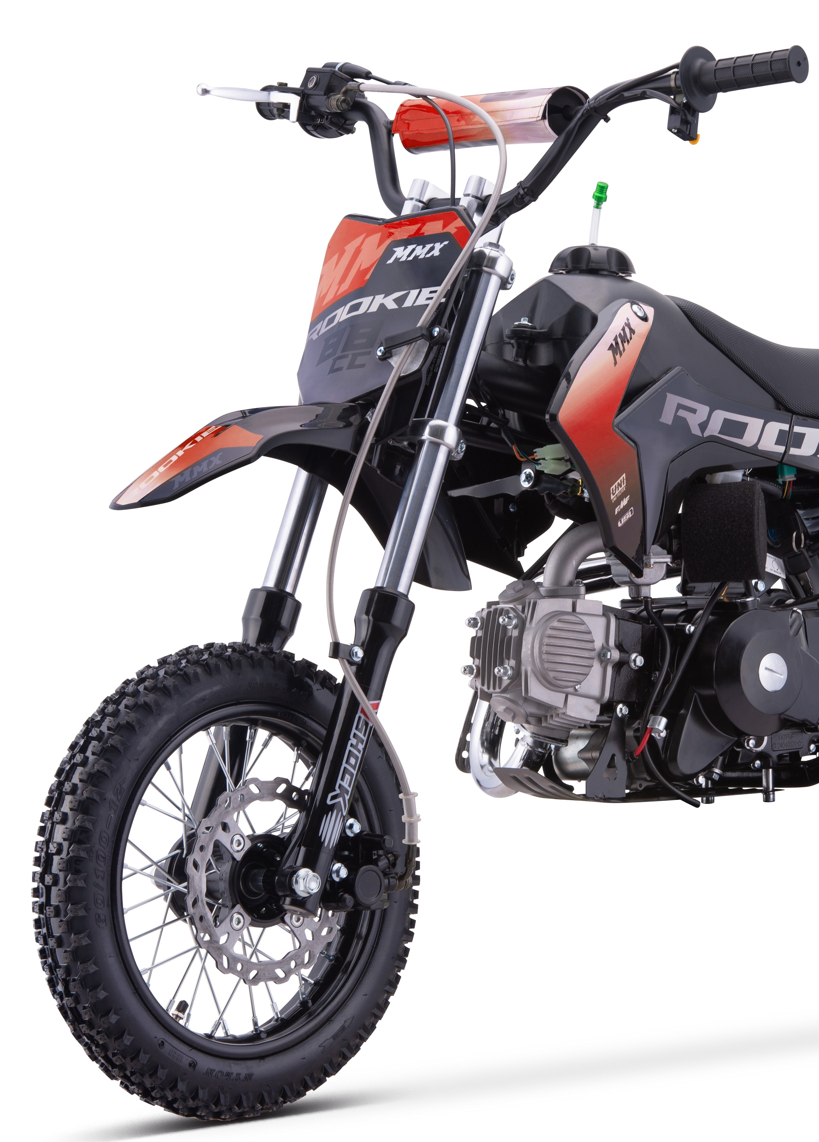 Motore: Il Mini MX - ROOKIE è dotato di un motore monocilindrico a 4 tempi da 88 cc, che fornisce la potenza adeguata per principianti e giovani ciclisti. Il motore è automatico, quindi non è necessario cambiare marcia manualmente, semplificando l'esperienza di guida.