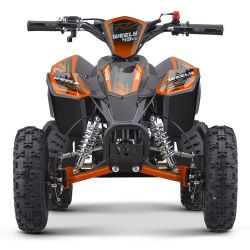 Dotato di una ruota da 6 pollici, questo Quad CRZ Weely è dotato di freni a disco a cavo che consentono una frenata di buona qualità. Il peso massimo autorizzato è di 60Kg, il peso a vuoto del Pocket Quad è di 32Kg.